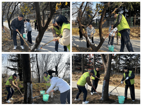 2025年12月5日正值“国际志愿者日”,体育部党总支、分工会组织教职工在龙湖校区开展了一场以“护树刷白 温暖过冬”为主题的校园树木养护劳动志愿活动。